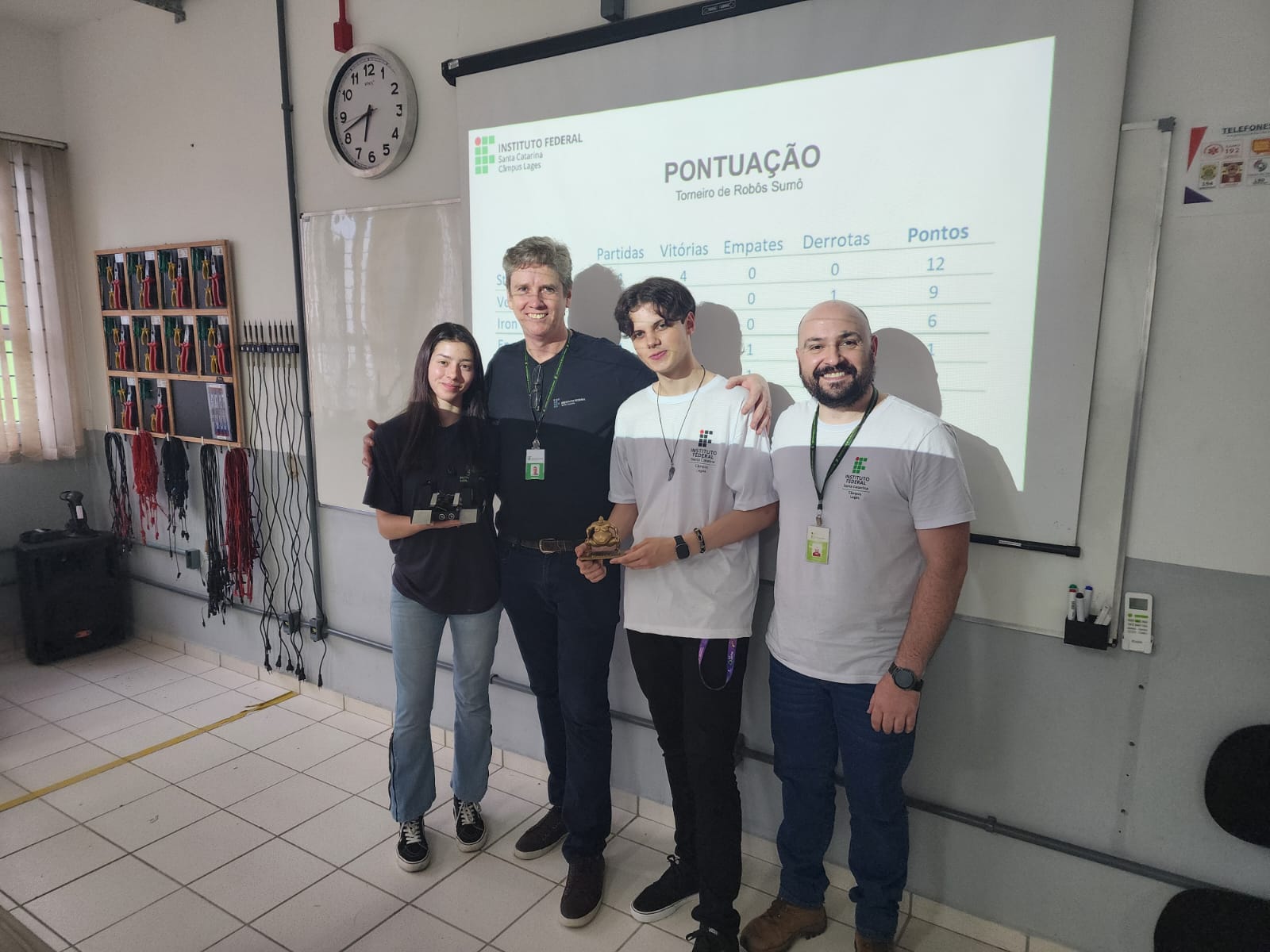 No último dia 18, o Câmpus Lages do IFSC promoveu um torneio de robótica. A competição ocorreu como atividade final da disciplina de "Projeto Integrador II", do curso de Mecatrônica (Fase IV). A competição foi na modalidade Robô Sumô, onde os robôs são autônomos e trabalham por programação inicial dos alunos. O torneio ocorreu no Hall de Entrada do Câmpus.