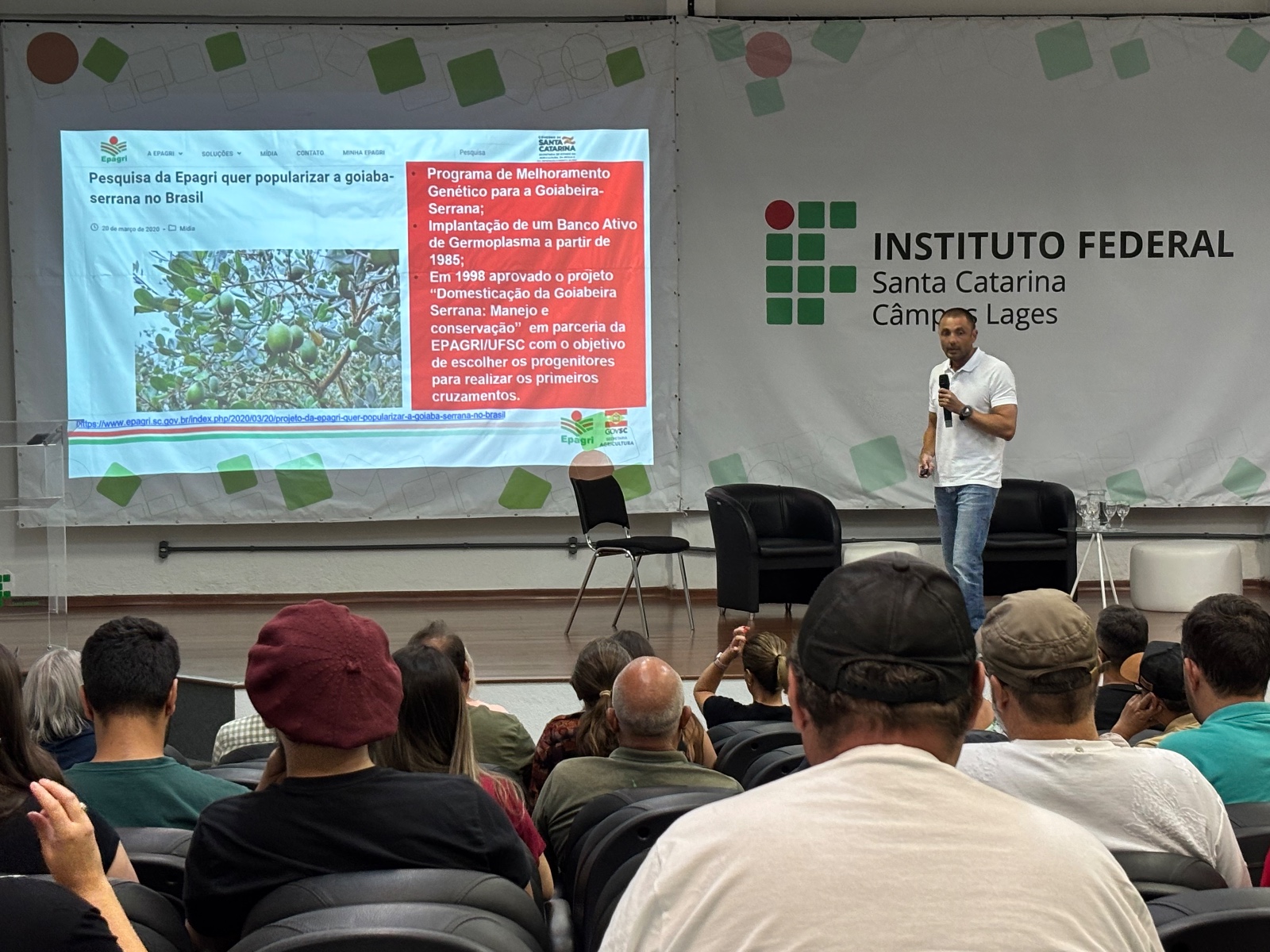 No último sábado (15), o Câmpus Lages do IFSC promoveu o evento Goiaba Serrana: do manejo ao mercado. Realizado no auditório do Câmpus e organizado pelos alunos do quarto módulo do curso superior de tecnologia em Gestão do Agronegócio, a atividade foi um encontro técnico e aberto à comunidade com atividades durante todo o dia.