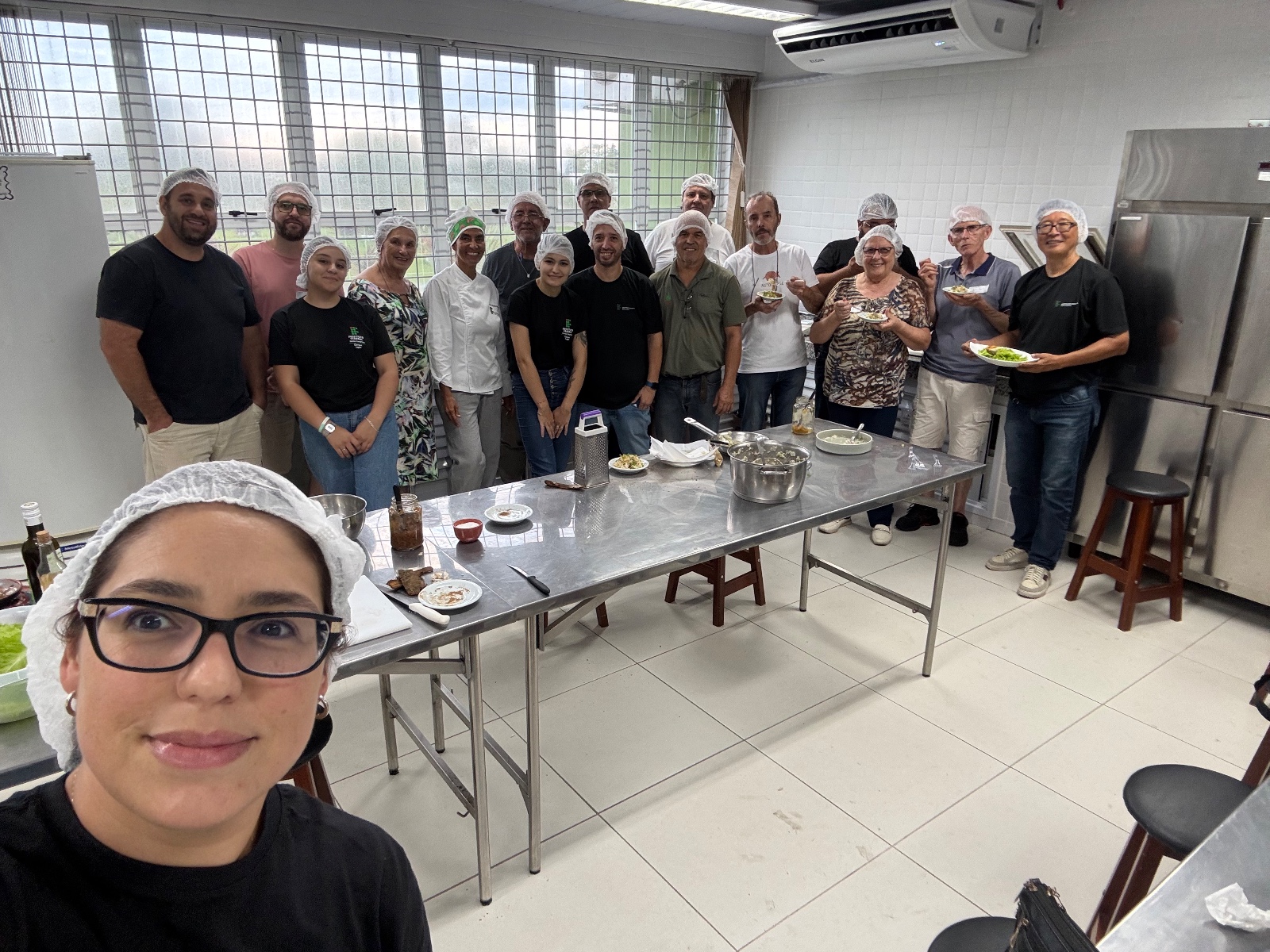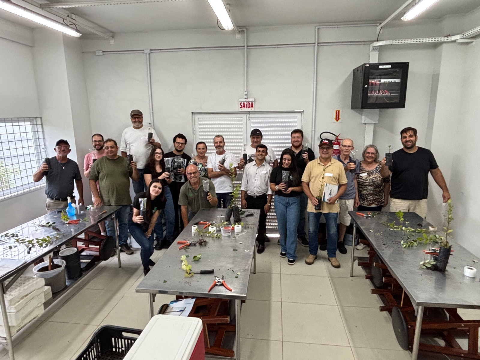 Já na parte da tarde, o encontro foi focado em duas oficinas, que foram ofertadas em dois horários para proporcionar ao maior número de participantes a oportunidade. Foram elas: Enxertia, com o Sadi Souza, Engenheiro Agrônomo e viveirista de mudas; e Produção Gastronômica, com Fabiana Amaral, professora de Gastronomia do IFSC Câmpus Continente.