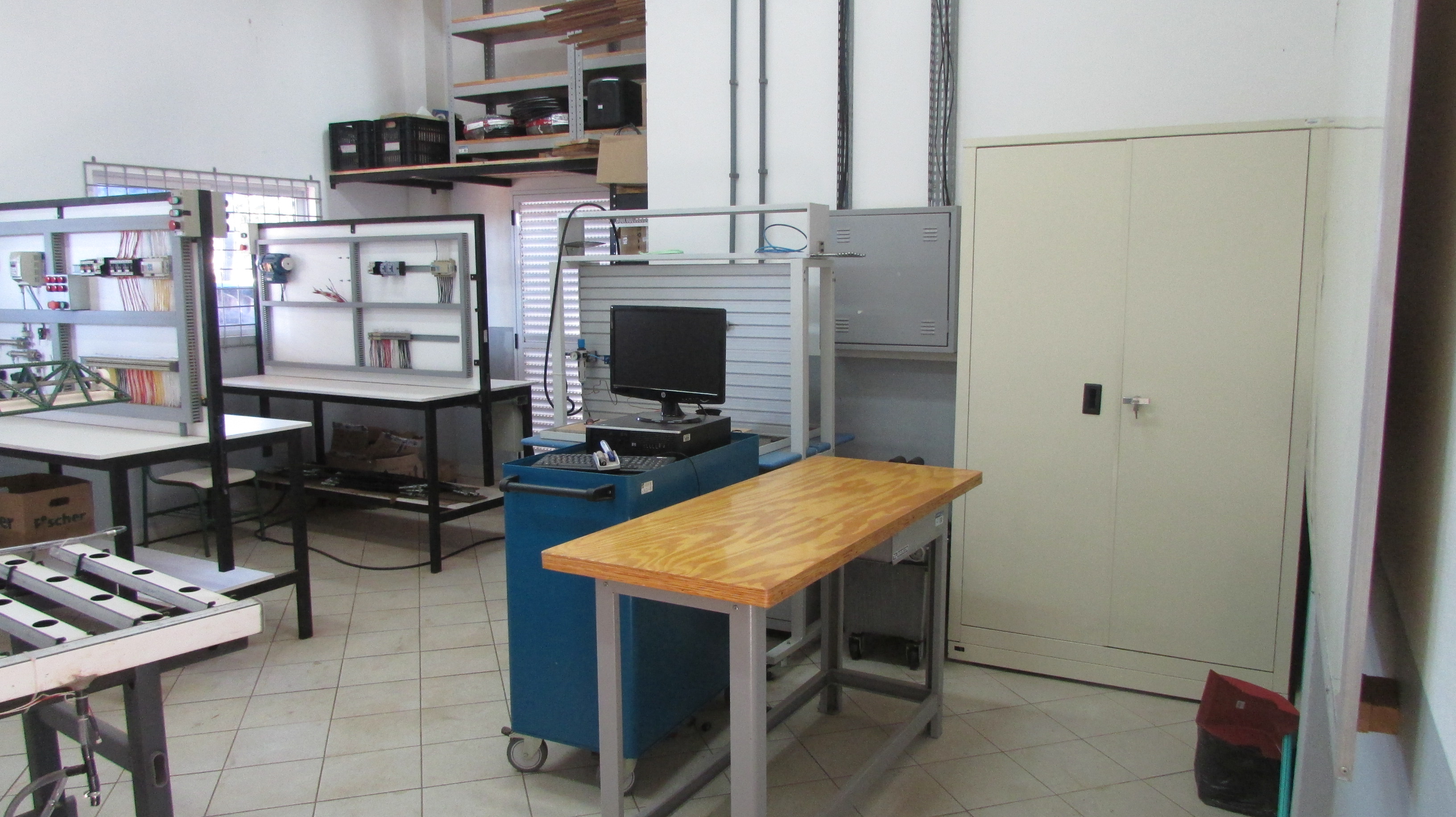 O laboratório de automação industrial é utilizado para atividades de ensino, pesquisa e extensão relacionadas a projeto, montagem e instalação de circuitos elétricos voltados para automação predial e industrial com a utilização de controladores lógicos programáveis. Atende atividades dos cursos de Eletromecânica e do curso de qualificação em Eletricista Predial de Baixa Tensão.