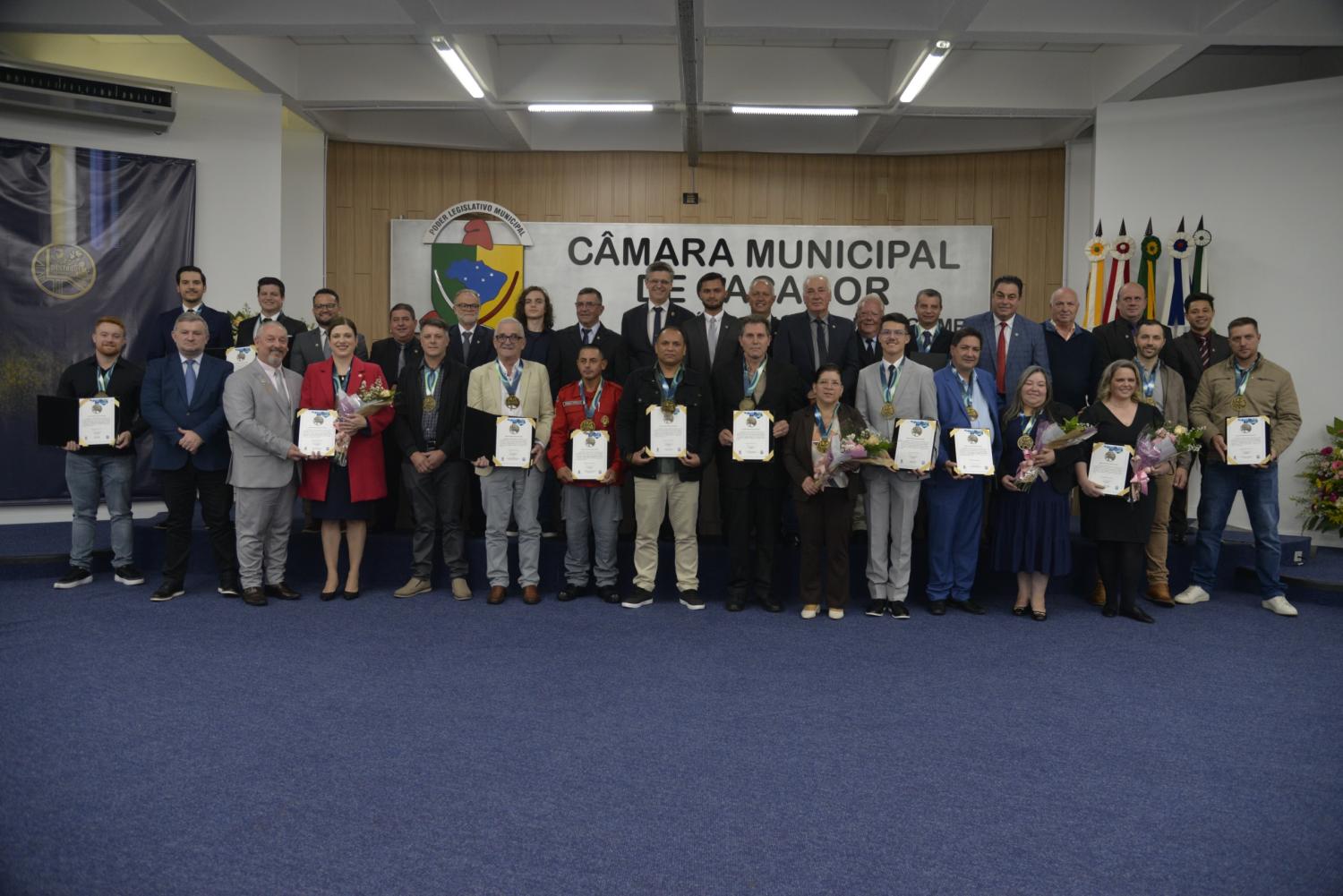 A cerimônia foi conduzida pelo presidente da Câmara, Almir Dias, ao lado do prefeito Alencar Mendes, do Cidadão Honorário Neoberto Balestrin, do ex-vereador Osmar Barcaro, um dos idealizadores da lei que instituiu a honraria, bem como do vereador Mirim Thiago Foppa Binder, representando o Programa Mirim.