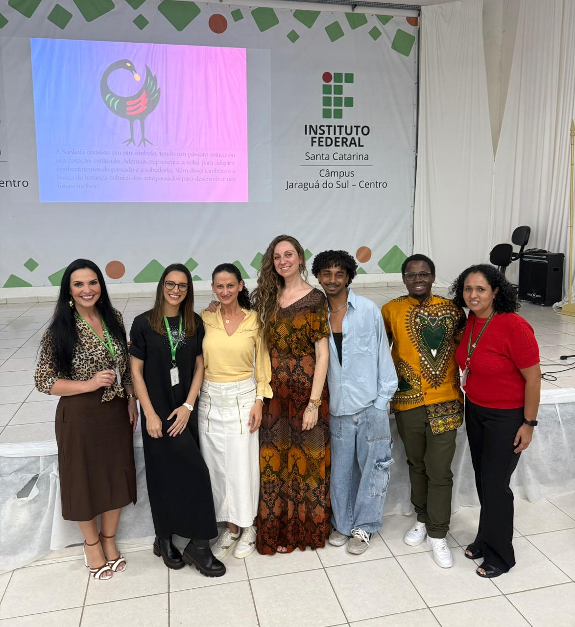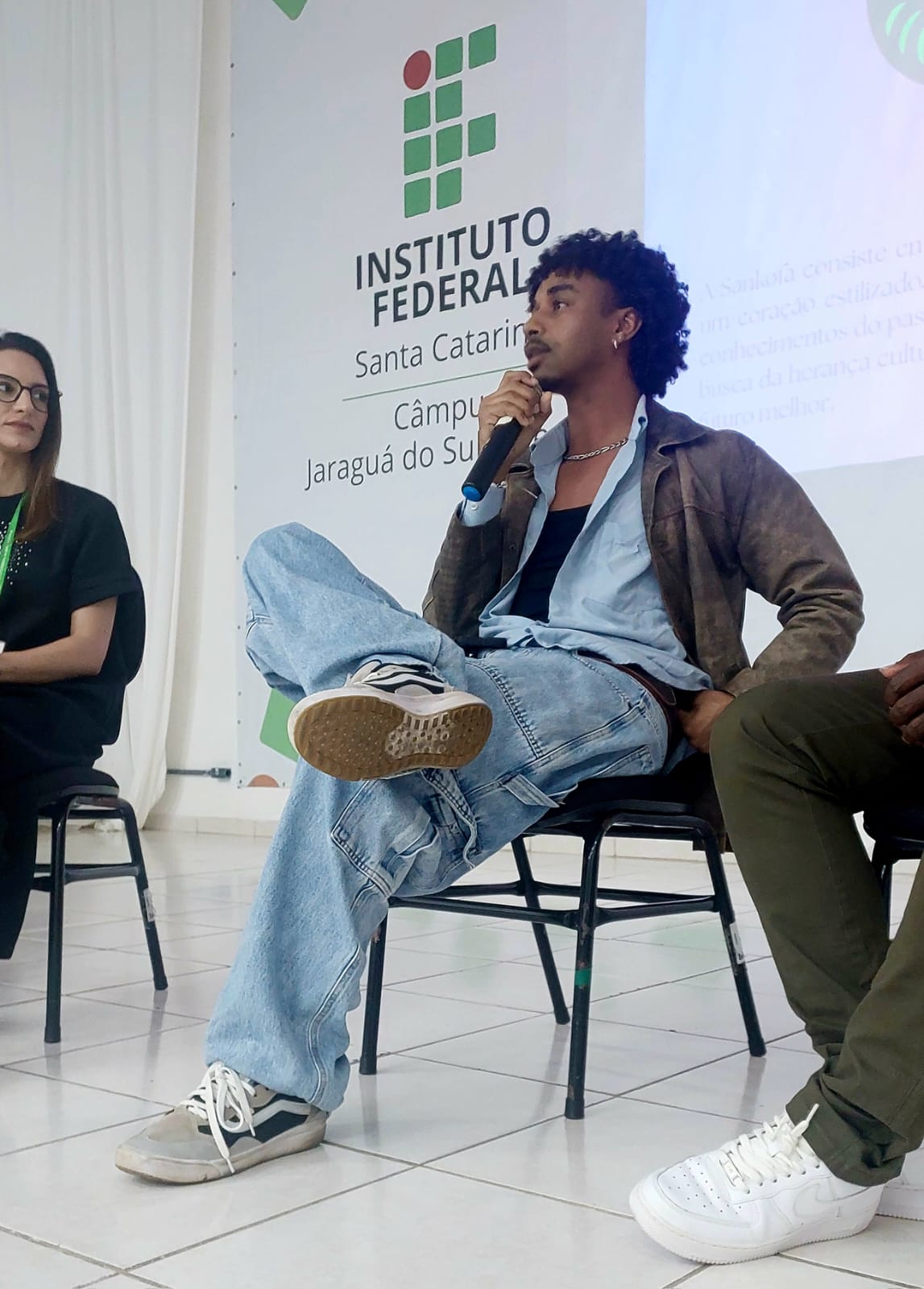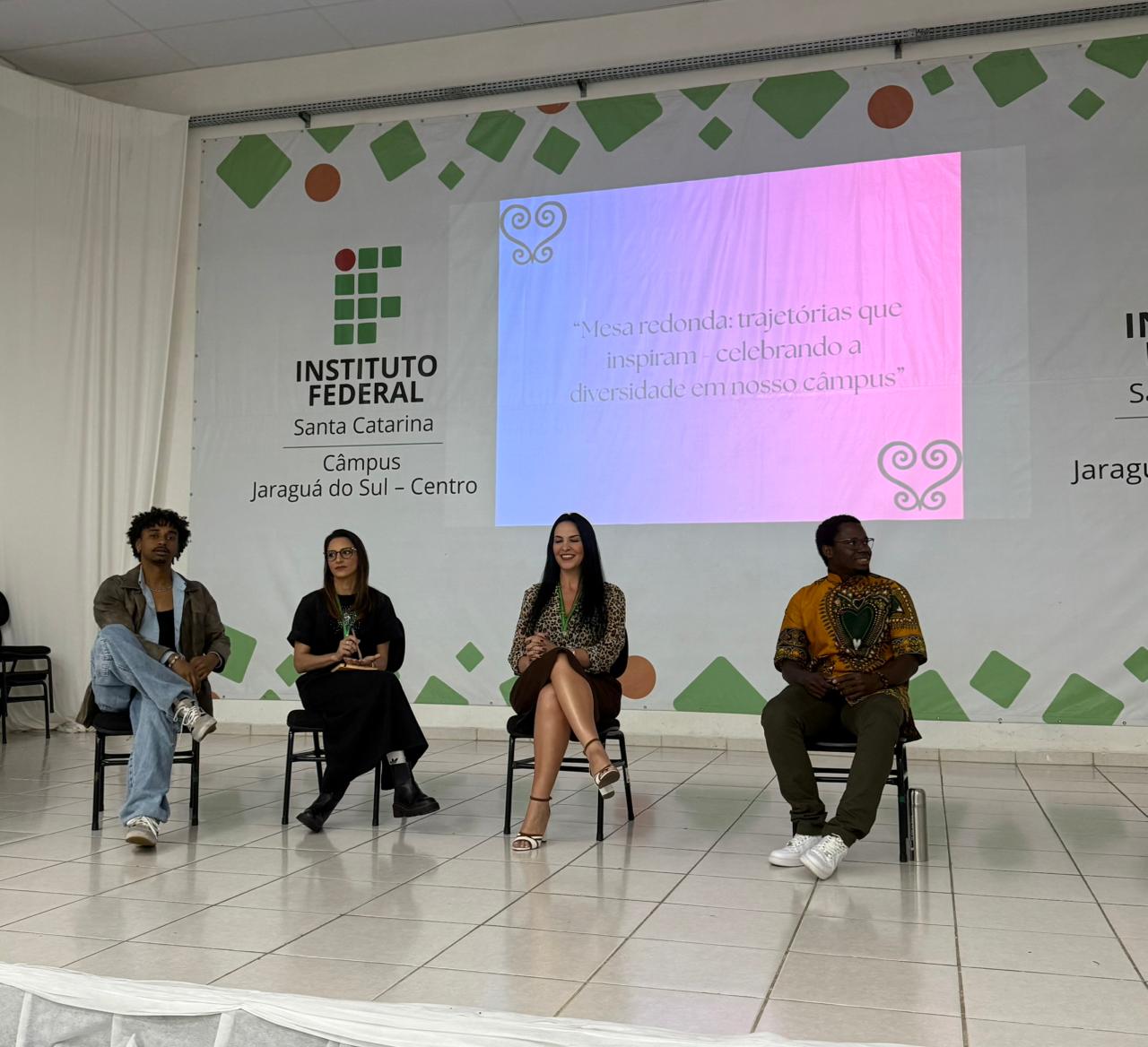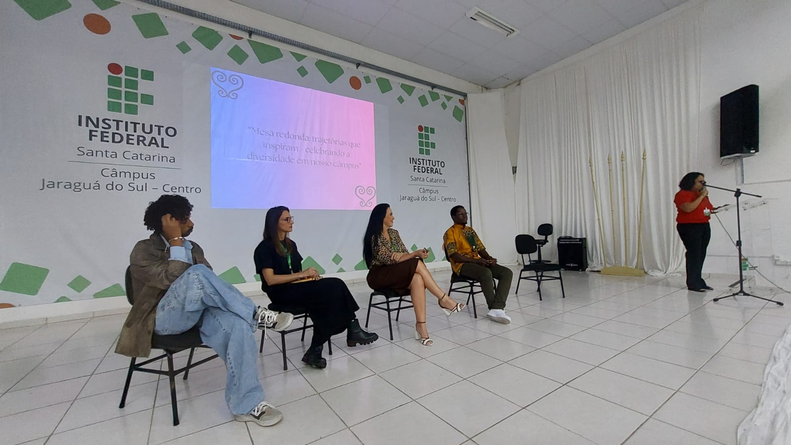 Na manhã desta quarta-feira (19), o auditório do Câmpus Jaraguá do Sul-Centro do Instituto Federal de Santa Catarina (IFSC) foi palco de um evento especial: a mesa-redonda “Histórias que inspiram: a diversidade no nosso câmpus”. Durante a atividade, cinco servidores compartilharam suas experiências de vida com o objetivo de celebrar a diversidade de trajetórias e reforçar os laços humanos dentro da comunidade escolar.