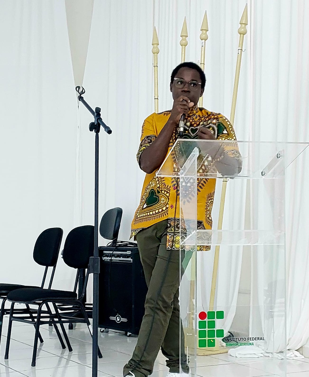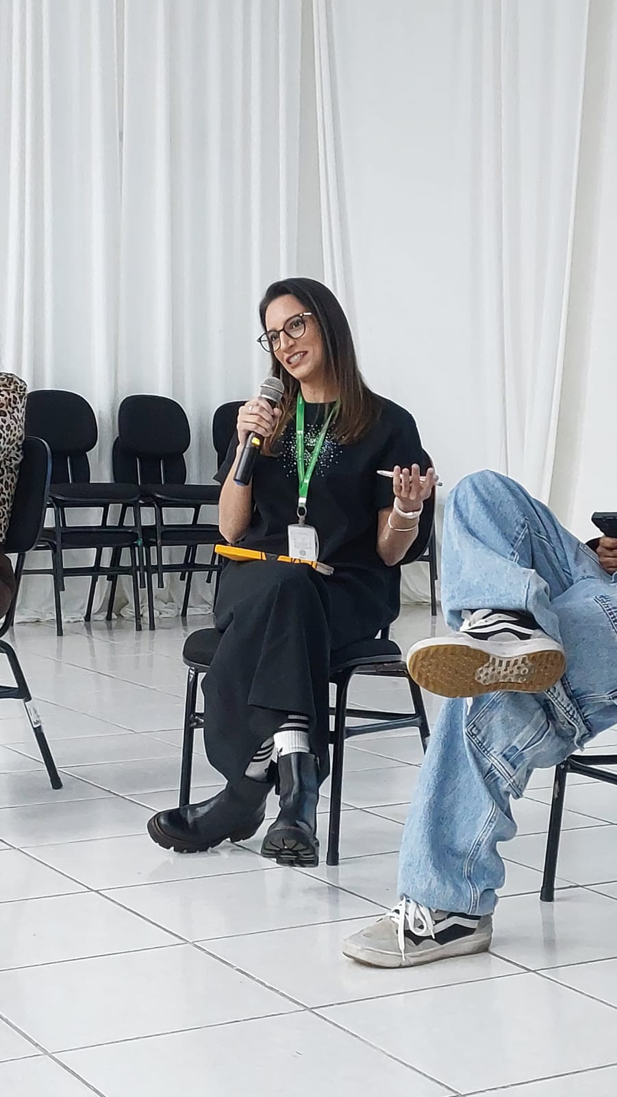 Os servidores que contaram suas experiências foram a técnica em assuntos educacionais Janete e os docentes Suzana (Língua Portuguesa), Sidiane (Moda), Alan (Moda) e Mamadou (Língua Portuguesa). Cada pessoa selecionou momentos significativos de suas vidas para apresentar aos estudantes que estavam no auditório. “A atividade se conectou com todas as unidades curriculares, gerando múltiplas inspirações, curiosidades e ampliando o repertório cultural de todos”, destaca Mariana.
