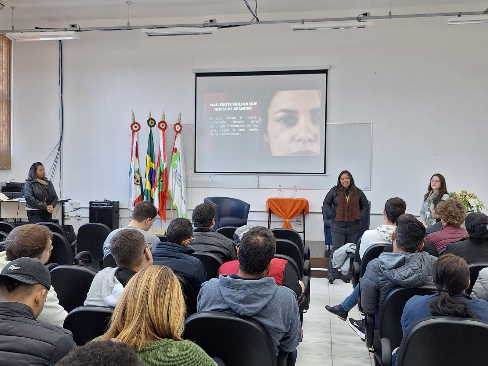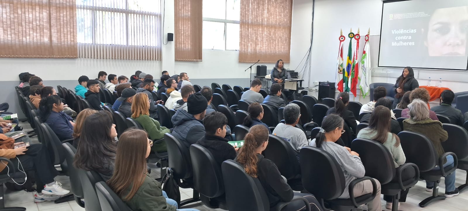 A palestra realizada no câmpus abordou tipos de violência, formas de identificação, redes de apoio em Jaraguá do Sul e canais de denúncia. A atividade contou com a participação de estudantes das primeiras fases da graduação em Engenharia Elétrica, servidores e funcionárias terceirizadas.